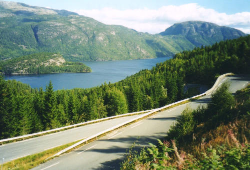 Jøssingfjord. Vejen var flere steder kun 3 m bred, så vi ville ikke tage den på