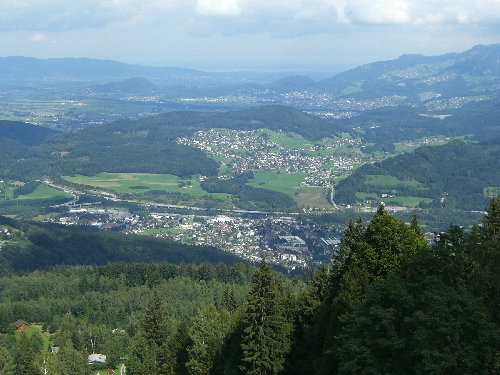 Mandag 3-9. Vi lægger ud med en vandretur med masser af udsigter. Vi kører til Gurtis og parkerer i nærheden af kirken. Nede i byen er der skiltet til Gurtisspitze som er målet. Det går en del opad med det samme, og vi får fin udsigt over dalen mod øst. Lidt senere, da stien går gennem kreaturernes indhegning, bliver der også god udsigt mod vest med Bodensøen som baggrund. Hele dalen er faktisk utrolig tæt bebygget. Efter 2 timer og 15 min når vi op på Gurtisspitze. Her har vi de to nævnte udsigter på en gang. Toppen ligger 1777 m.o.h, det er langt fra det højeste vi har gået til. Det er til gengæld den største højdeforskel vi har forceret. Byen vi startede fra, ligger 904 m.o.h, så det er trods alt en forskel på 873 m. Turen tilbage til bilen gik vi på 1,5 t. Hvis ikke man orker at gå hele turen op, kan man få meget god udsigt alligevel, selv om man vender om allerede efter en time. 15,6 km.