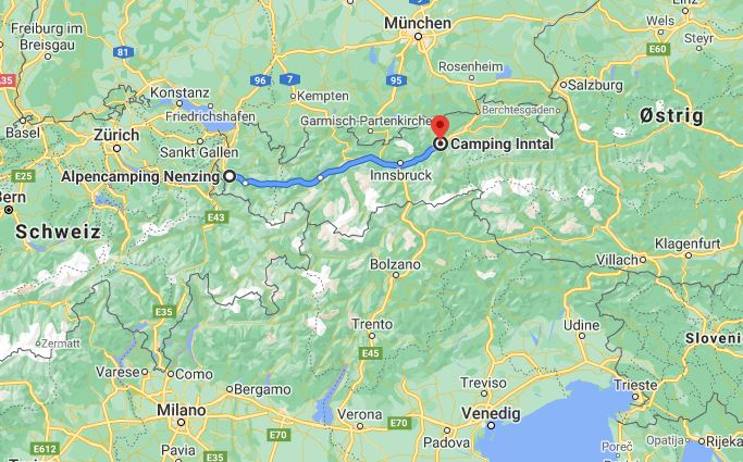 skulle støde til. Vi beslutter derfor at gemme de planlagte ture i Vorarlberg til en anden gang, og køre videre i morgen. Vi er dog først nede på turistkontoret, hvor vi får fat i en masse godt materiale om vandremuligheder. Vi har derfor mulighed for at få planlagt, en endnu bedre tur herned til en anden gang, hvis vi så ellers kan undgå at få sne i 800 m. Vi slutter opholdet på Nenzinger Alpencamping af, med en god underholdende aften i restauranten med levende musik. Der er i øvrigt mange aktiviteter på pladsen. Dem kan man læse nærmere om på deres hjemmeside: Alpencamping Nenzing